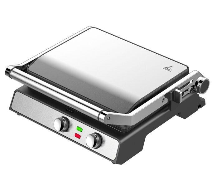 Campomatic Professional Contact Grill, 2000W, Full Stainless Steel Body, Large Detachable Non Stick Plate, 180 degree opening, Timer