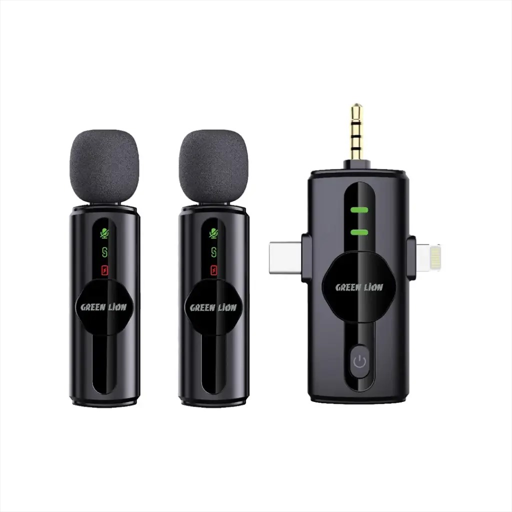Green Lion Microphone 3 Level Noise Cancellation Led Display 5 HRS Working Time Real Time Monitoring Ultra Low Delay 360° Omnidirectional Dual Microphones