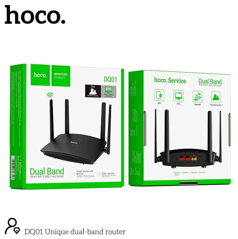 HOCO DQ01 Unique dual-band router 5.8ghz CAPABLE, Compact & Ideal as repeater Smart Wifi 5 (802.11ac)