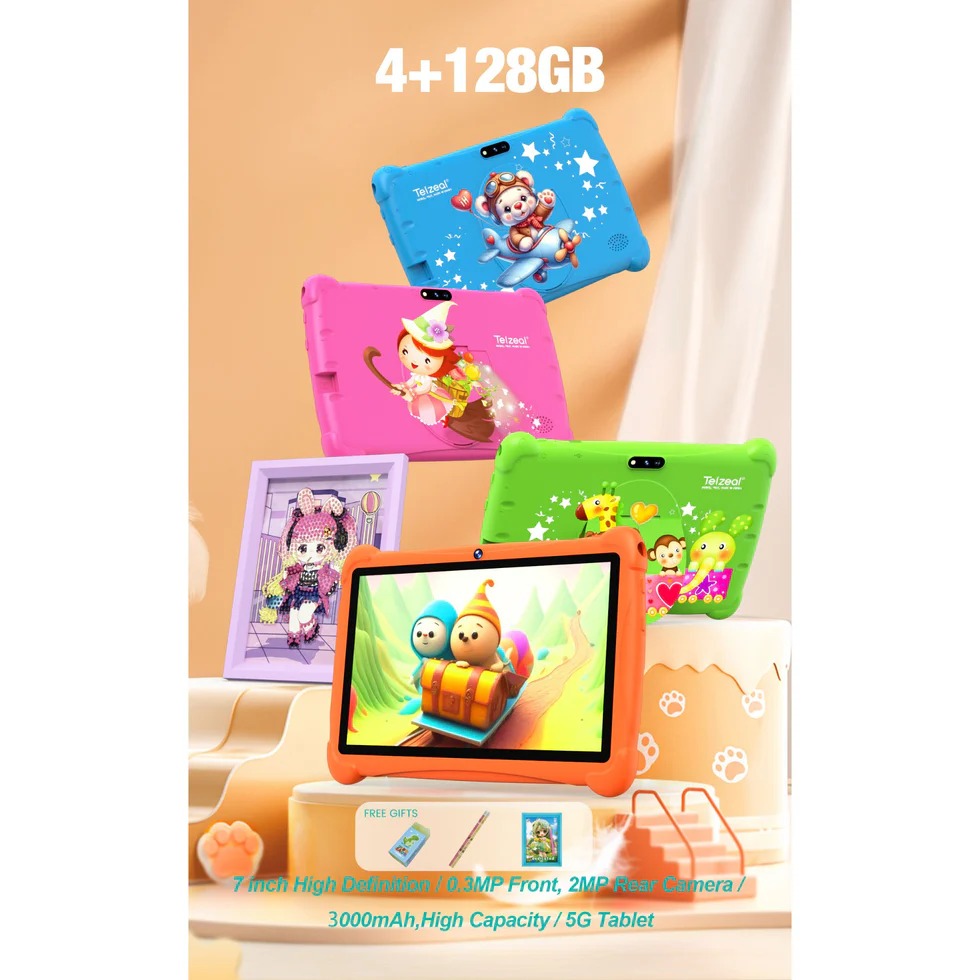Telzeal P602 7″ HD Android Tablet – 4GB RAM, 128GB ROM, 3000mAh Battery, WiFi, Dual Cameras, Includes Free Gifts, High-Performance, Portable, User-Friendly