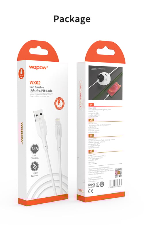 Woppow Data Cable Soft Fast ChargingLightning USB Cable Length 1200mm