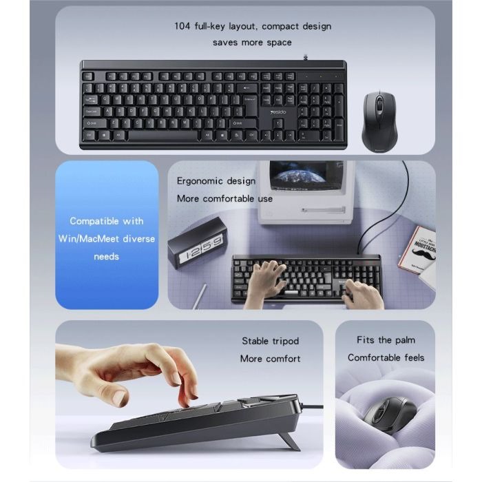 Yesido KB18 104 Full Keys Compactlayout 1.5M Length Cable USB connection Wired Keyboard And Mouse Set.